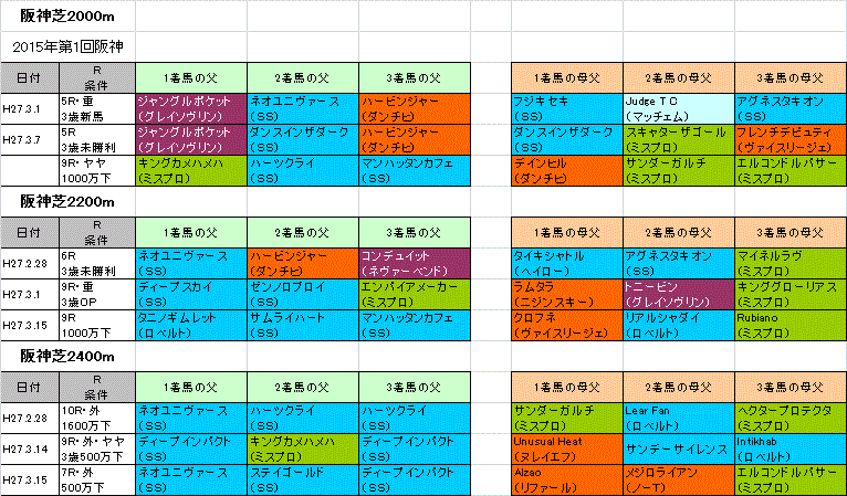 阪神大賞典2015が行われる阪神芝コースの血統データ