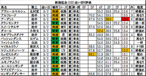 新潟記念2015出走予定馬の追い切り評価