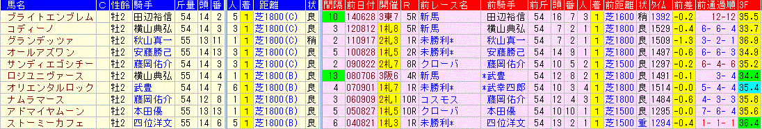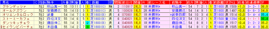☆前走:未勝利戦 4-1-1-21該当馬一覧(3着以内馬のみ)