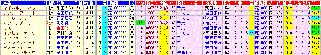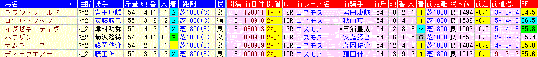 ☆前走:コスモス賞 1-4-1-15該当馬一覧(3着以内馬のみ)