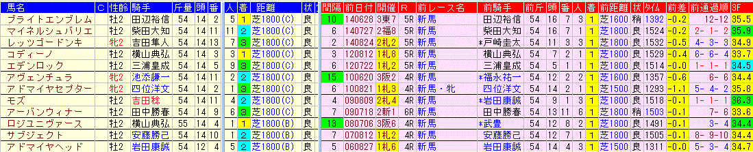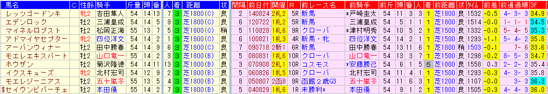 ☆前走:新馬戦 3-5-4-54該当馬一覧(3着以内馬のみ)