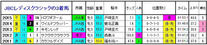 11/3(祝・木) 川崎9R(15:10) 第6回JBCレディスクラシック(Jpn1) ダート1600m