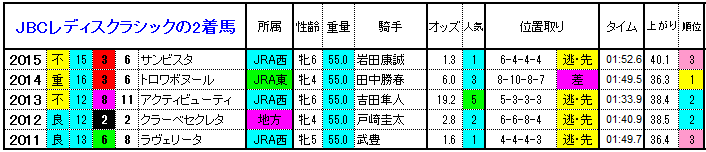 | 2014 | レディスプレリュ | 2 | 2 | 柳都S | 1 | 2 | レディスプレリュ | 1 | 1 |
