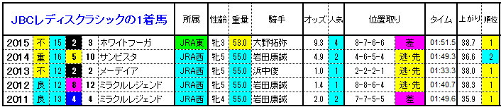 ※コーナー通過順位| 年度 | 場 | 数 | 1着馬 | 2着馬 | 3着馬 |