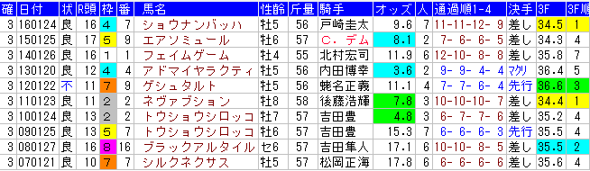 ⇒ | 3 着 馬 |