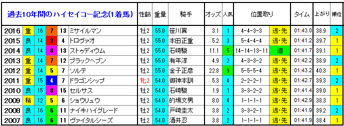 | 2016/11/16 | 重 | 16 | 4-4-3-3 | 8-9-7-6 | 1-1-1-1 | 37.9-38.9 | 01:43.0 |