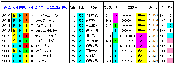 | 2015/10/14 | 良 | 14 | 5-4-4-4 | 3-3-3-3 | 2-2-2-1 | 36.9-40.3 | 01:41.2 |