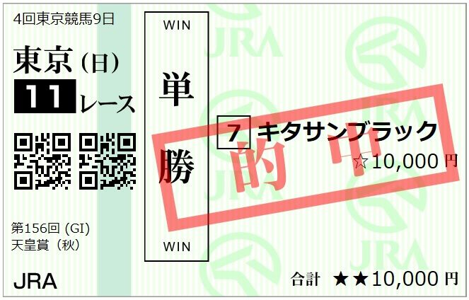◎キタサンブラック(単勝310円)的中!