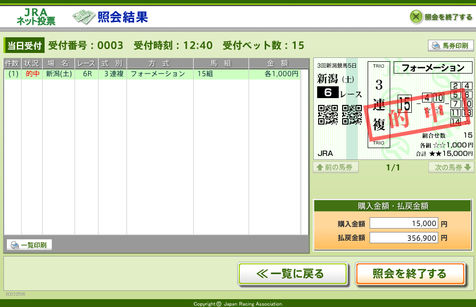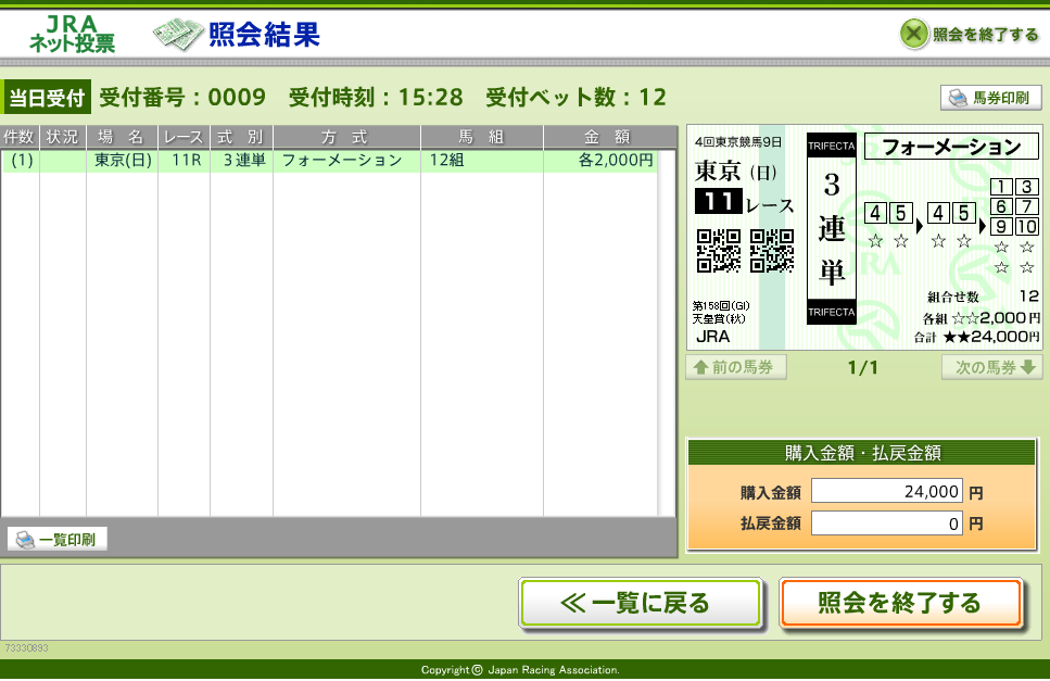 あとから検証したところ、馬券組み立てミスです。