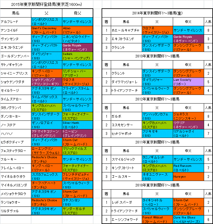 東京新聞杯2015の血統傾向まとめ