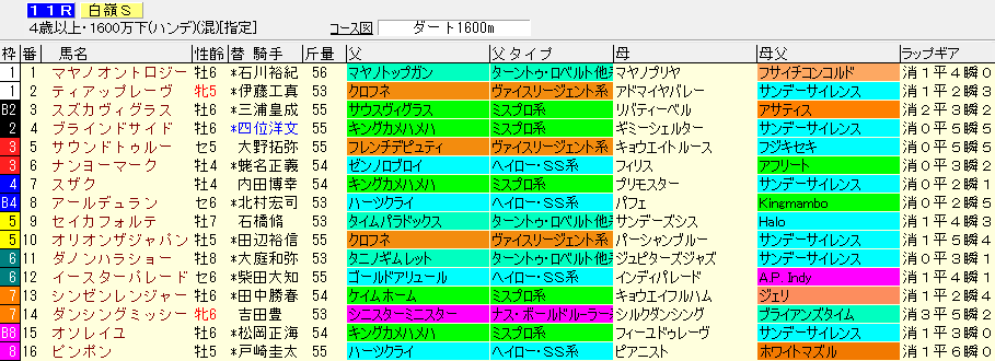 【白嶺S予想《血統・ラップギア入り枠順表》】