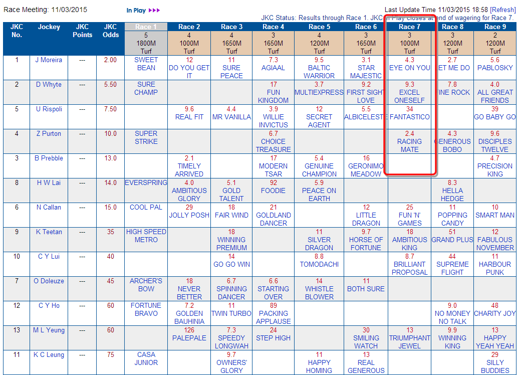 或いは香港初出走のN・ローウィラー騎手の2・Dillyまで。