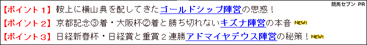 高速馬場の京都なら・・・”と狙い済ましての参戦となる隠し玉。この隠し玉が馬券に絡めばキズナ・ゴールドシップ・アドマイヤデウスが相手であろうと高配当はまず必至。