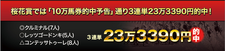 桜花賞 23万3390円 的中!!