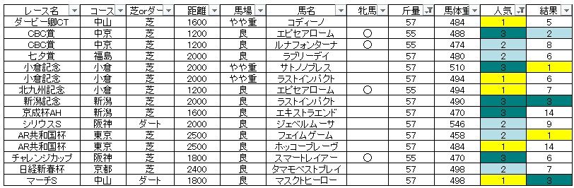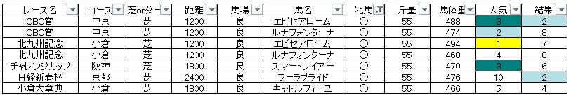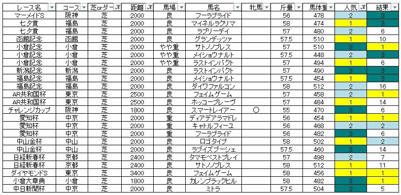 このことから牝馬が重斤量を背負った時は評価を見直したいと思います。