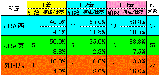 OPクラス実績(勝ち馬実績)