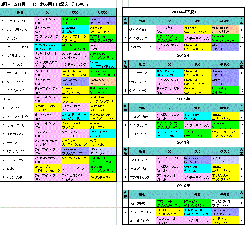 安田記念(2015)の登録馬と過去5年の血統傾向