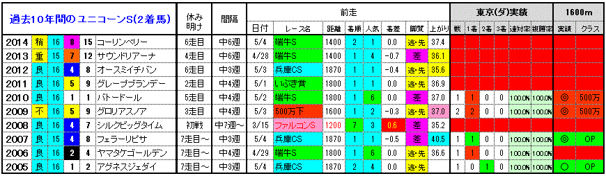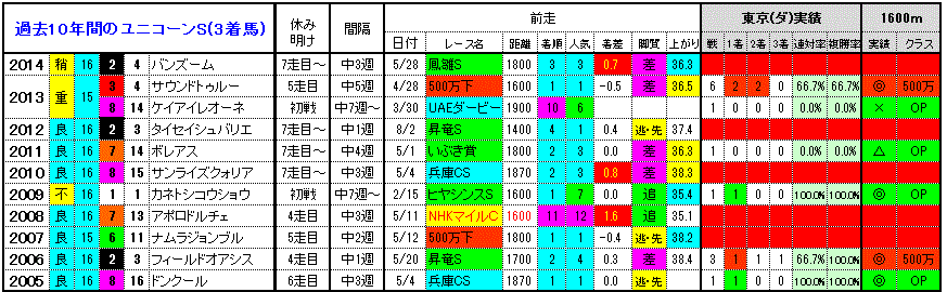 【ユニコーンS 過去10年間の1-3着馬の前走】