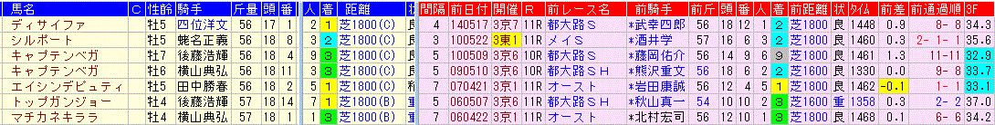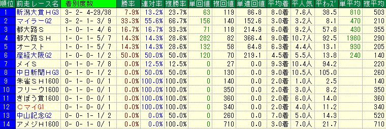 ☆前走1600万下 0-3-1-11 ・・・該当馬がいないので省略します。
