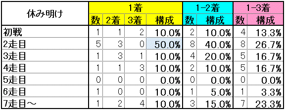 因みに1・3着馬の7割は年内のOP又は重賞で連対した実績のある好調馬。