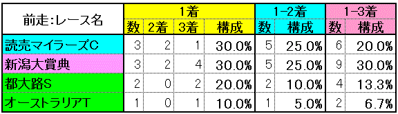 【エプソムカップ 過去10年間の1-3着馬の前走】