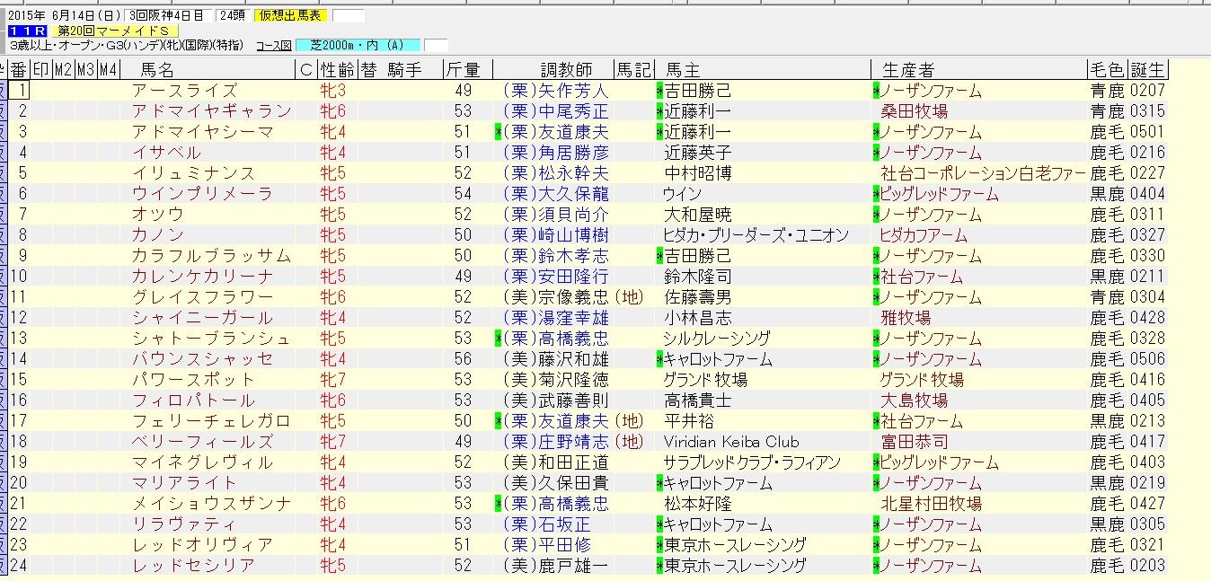 日曜日阪神競馬場で行われるマーメイドステークス2015の出走予定馬です。