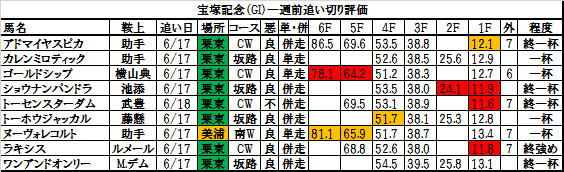 宝塚記念2015出走予定馬の1週前追い切り評価
