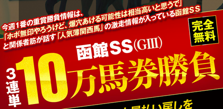 栗東トレセンの関係者筋が口を揃えて「絶対に買っておいた方がいい」と話している人気薄関西馬からの【函館スプリントS】最終結論【3連単10万馬券勝負】をこの記事を見てる方に限り完全無料公開します。この機会をお見逃しなく!