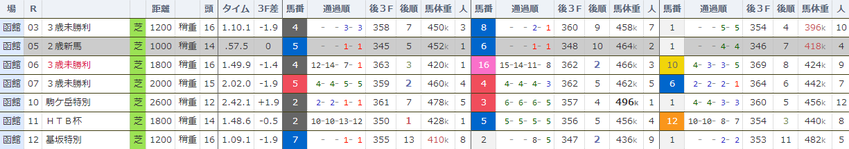 函館 芝 レース数:13