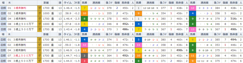 このような競馬の時は「詰脚」で見ると特徴があったり。