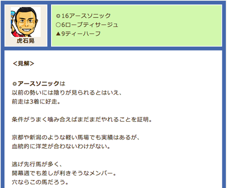 虎石氏の予想を参考にしたいなと思ったら『単複馬券』が圧倒的におすすめです。統計的に成績が良いので知っておいて損はないです。