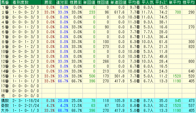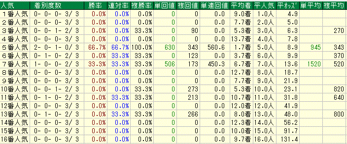 3F 3位 0- 0- 0- 2/ 2 0.0% 0.0% 0.0% 0 0