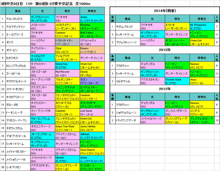 中京記念(2015)の登録馬と過去3年の血統傾向