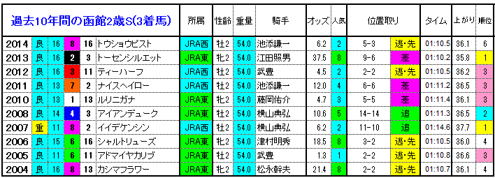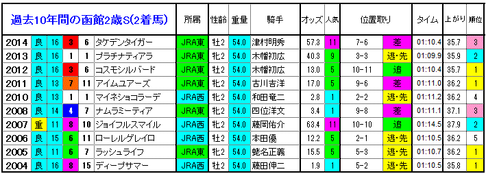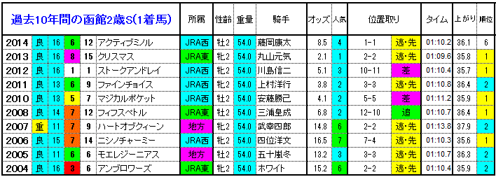 【函館2歳S 過去10年間の1着馬】