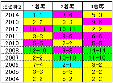 全体的には前目の馬が多いんですが、近年は先行決着がかなり少なく、差し・追込馬の台頭も目立ちます。逃げた馬はかなり残念な成績。