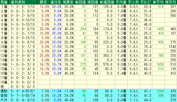 5・6・7・8枠から優勝馬が8頭。全体的にも外寄りの枠の好走率は高めです。