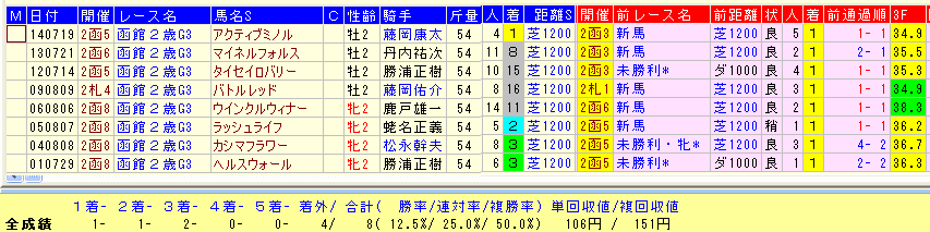 ・函館2歳S近14年、連闘馬は【1.1.2.4】
