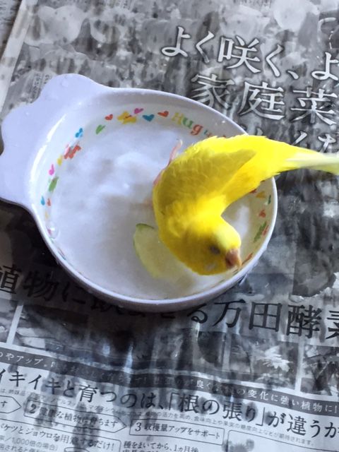 相変わらずピーコは気持ち良さそうに水浴びしています♪