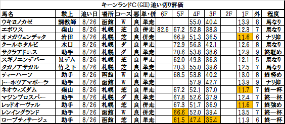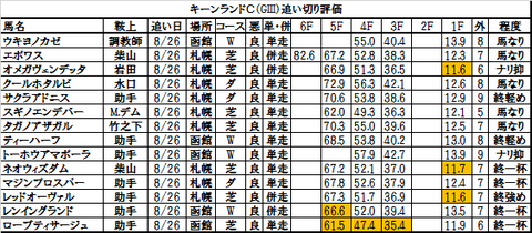 キーンランドカップ2015出走予定馬の追い切り評価