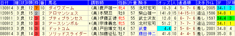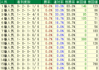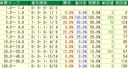 牝馬 1-0-3-11 勝6.7% 連6.7% 複26.7%