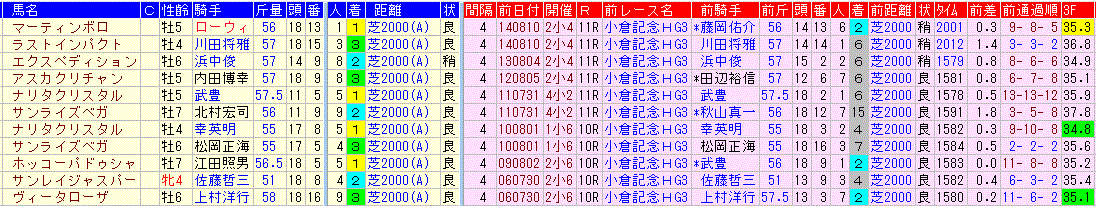☆前走:小倉記念 4-3-4-30該当馬一覧(3着以内馬のみ)