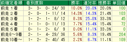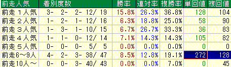 コチラは前走好馬がそのまま人気に応えるパターンと前走が案外で人気を落として好走するパターン。