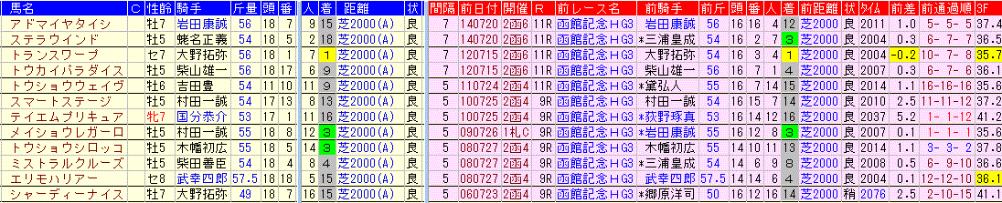 ☆前走:函館記念 1-0-2-9該当馬一覧