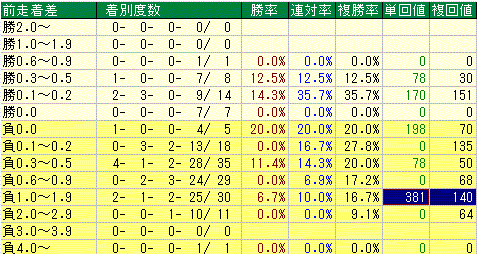 逃げ 0- 0- 1- 6/ 7 0.0% 0.0% 14.3%
