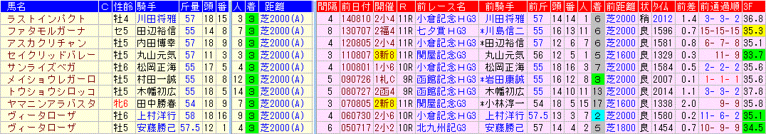 ☆前走:関屋記念 0-0-2-19該当馬一覧(3着以内馬のみ)
