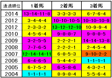 どちらかと言えば前目の馬が好成績というぐらいで差しも割と決まっています。ハナを奪った馬、後方からの追込みはやや苦戦気味。