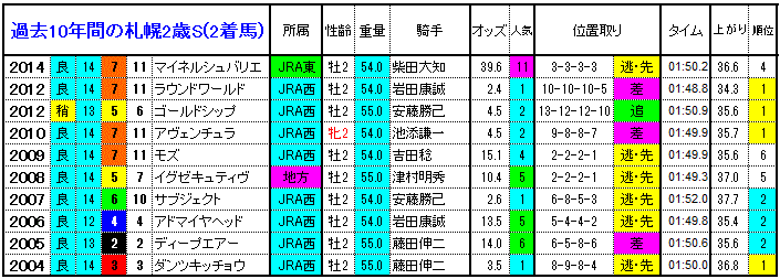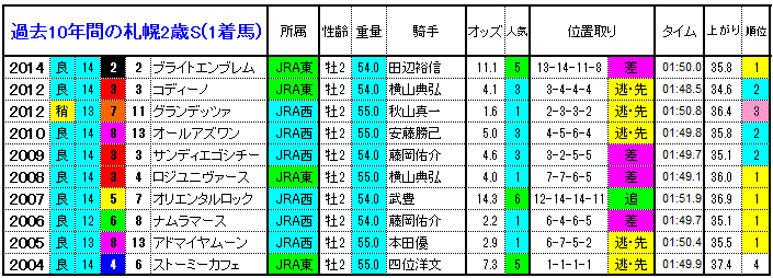 ◆【札幌2歳S 過去10年間の1着馬】