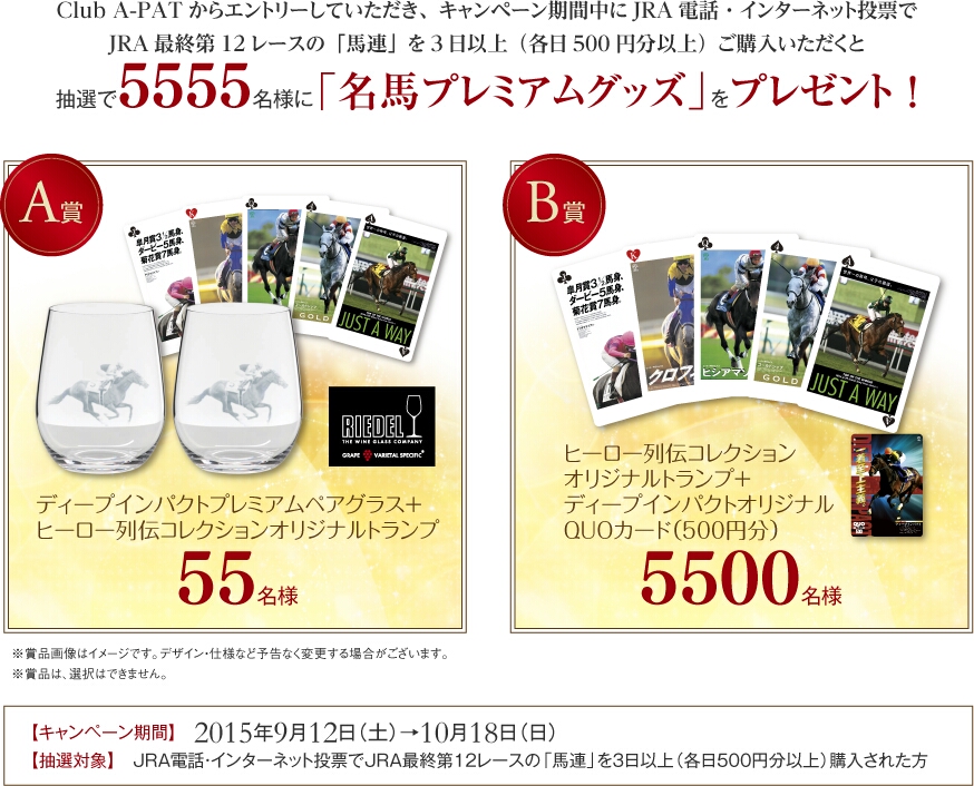 で5,555名様に名馬プレミアムグッズをプレゼントいたします。