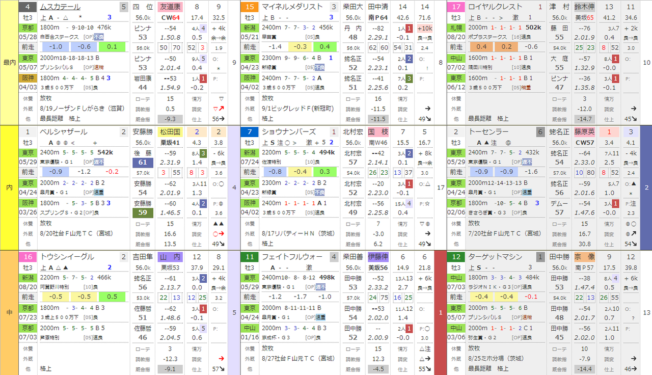 過去の位置取りシートを見ると、近年は1~3着までリストアップされております。