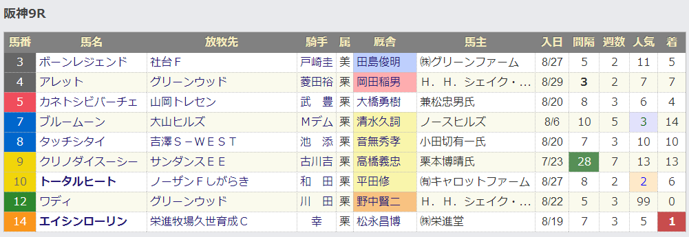 日曜日分では阪神9Rを取り上げました。